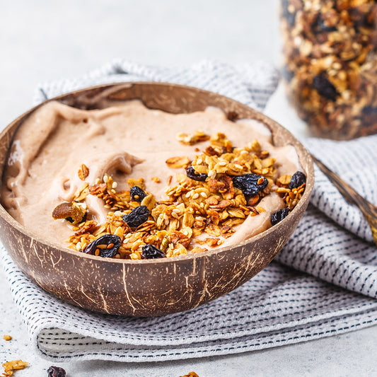 Blueberry Smoothie Bowl in a Coconut Bowl