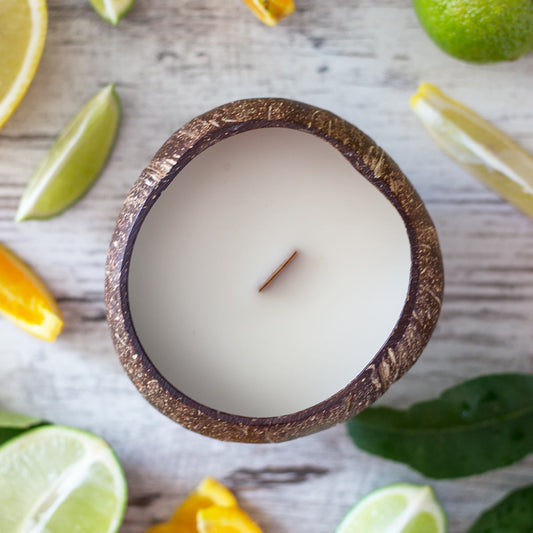 Featured in a real coconut shell, these hand poured coconut candles look and smell incredible. Beautifully scented with natural oils, coconut candles give you that relaxed holiday at home feeling with their ambient light and crackling wooden wick.